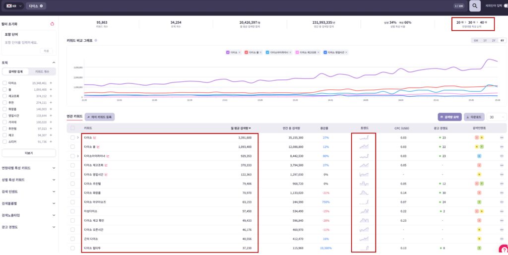 특히 벤치마킹 대상을 설정할 때 유용합니다. “이 정도 브랜드만큼은 되고 싶다”는 목표가 있다면, 해당 브랜드의 검색량 추이를 지속적으로 모니터링하세요. 어떤 이벤트나 캠페인 후에 검색량이 올랐는지, 어떤 키워드와 함께 검색되는지를 분석하면 성공 전략을 역설계할 수 있습니다.