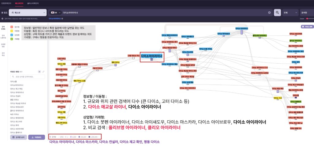 이처럼 하나의 주요한 키워드를 기점으로, 검색 경로를 목적에 따라 분석해보면 소비자들의 다양한 니즈와 의도를 파악할 수 있습니다.
