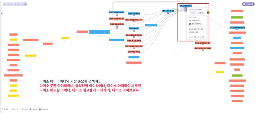 위와 같은 개념을 염두에 두고 ‘다이소아이라이너’ 키워드의 검색 경로를 분석하면 어떤 점이 두드러질까?