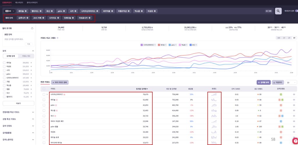 트렌드는 어느 날 갑자기 오지 않습니다. 검색 데이터를 보면 작은 신호들이 먼저 나타납니다. 특정 성분이나 기능에 대한 검색량이 서서히 증가하기 시작하면, 그것이 다음 시즌의 메가 트렌드가 될 수 있습니다.