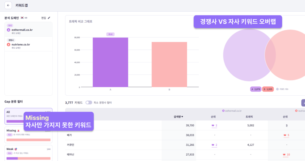 에스더몰 vs뉴트리원 키워드갭 분석