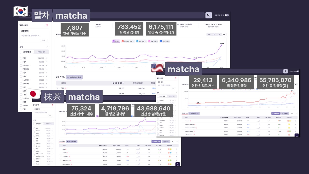 - 미국 월 10억개+, 일본 월 3억, 한국 월 2억개의 검색 키워드 전수 분석