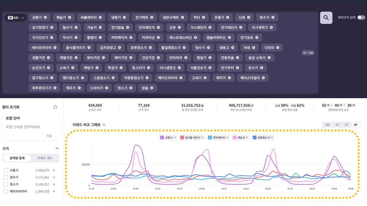 - 최대 4년치 검색 데이터 기반으로 CPC, 광고 경쟁도 등 분석
