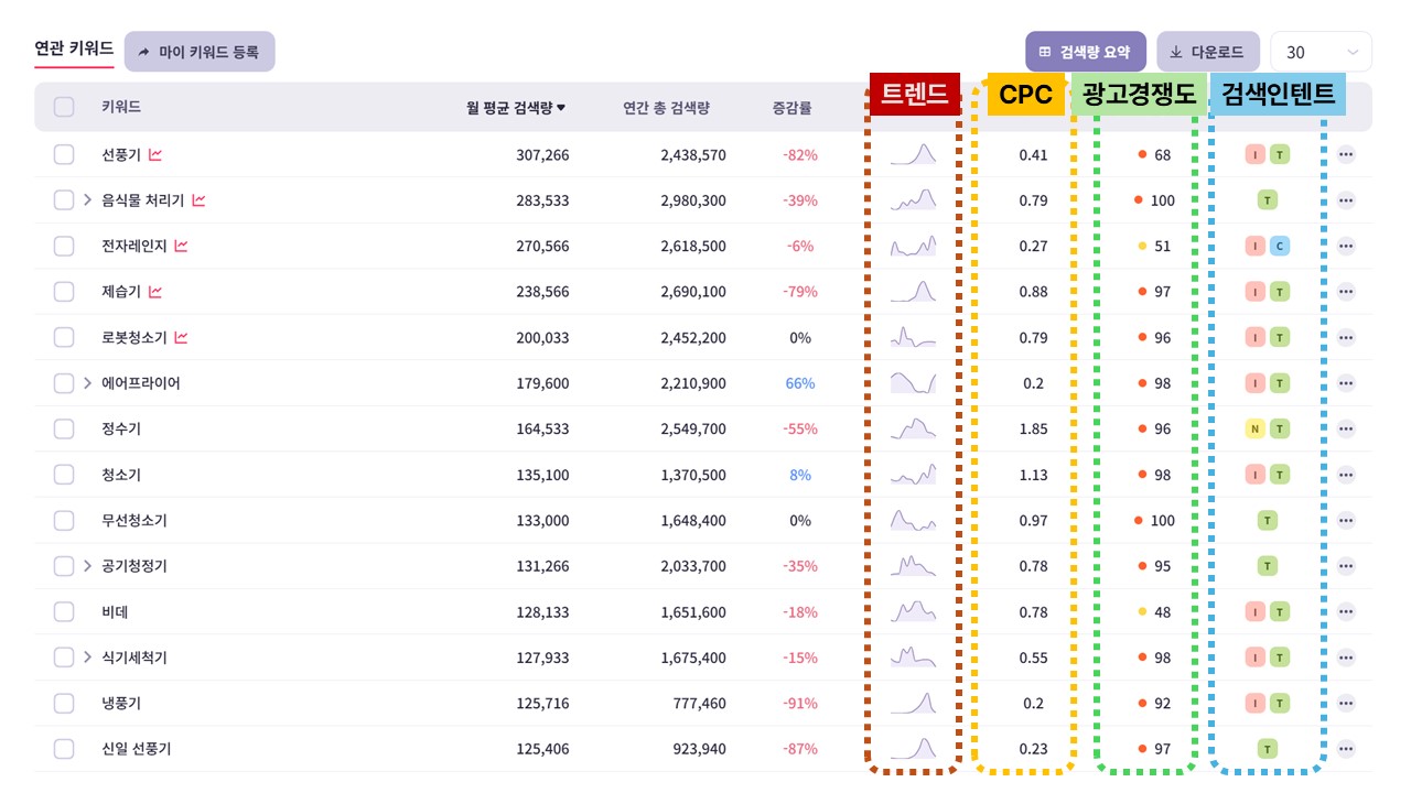 - CPC·경쟁도·검색량 변화까지 한 번에 확인