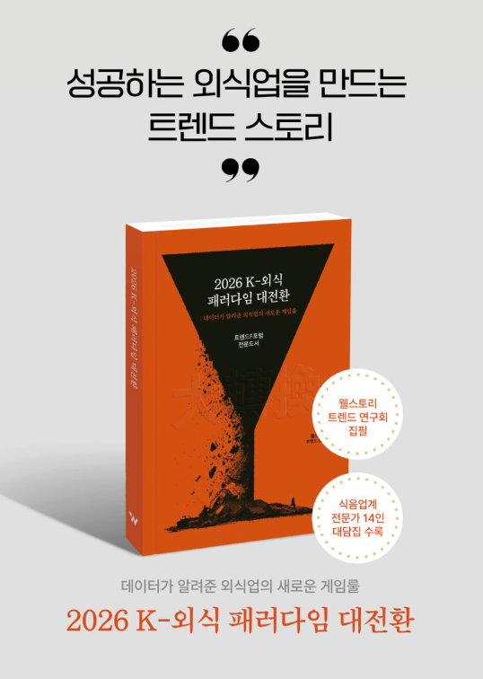 이러한 문제의식 속에서 웰스토리 트렌드 연구회는 2025년 12월, ‘2026 K-외식 패러다임 대전환’을 출간했다. 이 도서는 식음업 경영자와 업계 종사자들이 다가올 외식 환경의 변화를 구조적으로 이해하고, 다음 전략을 준비할 수 있도록 돕기 위해 기획, 출간되었다.