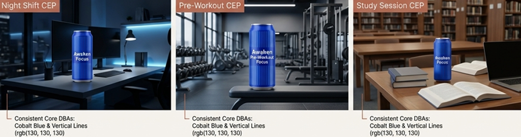 이는 배경이 운동중이든, 여행중이든 핵심적인 브랜드 패턴은 유지해야 한다는 뜻이다. 이는 창의성을 제한하라는 의미가 아니라, ‘인식의 기준점’을 고정하라는 의미에 가깝다. 이를 통해 AI는 일관된 DBA 패턴과 다양한 CEP 클러스터 사이의 강력한 연결 고리를 학습하게 된다. 즉, 상황에 유연하게 대응하면서도 브랜드의 코어는 엄격할 정도로 일관되게 지키는 것이 필요하다는 것이다.