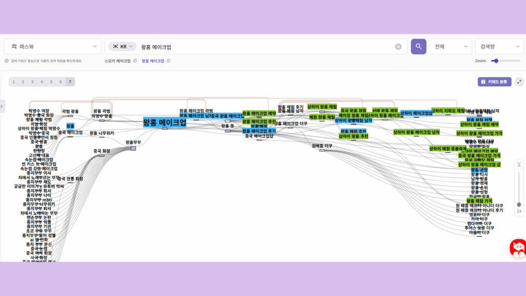 리스닝마인드 허블 쿼리파인더 ‘색조/메이크업 관련 키워드 42개 입력 결과’ 중 포함단어 ‘왕홍’