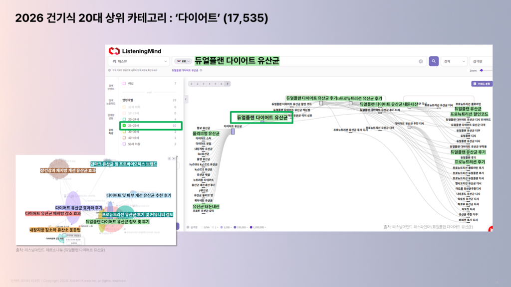 20대는 다이어트 및 피부·호르몬 관련 관심이 높고,