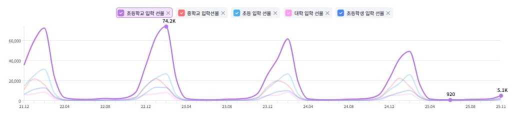 계절적 요인, 사회적 이슈, 미디어 노출, 그리고 소비자 니즈 변화가 복합적으로 작용하면서 특정 시점에 검색량이 급증할 수 있습니다.