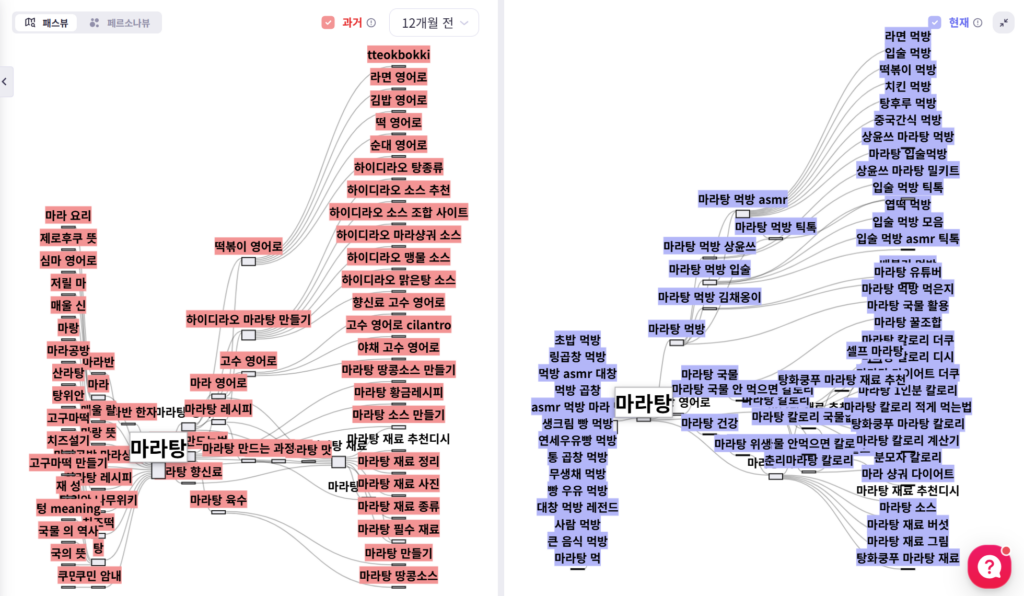- 현재: ‘마라탕’과 관련된 콘텐츠를 활발하게 소비하며, 12개월 이전보다 소비(섭취) 관련 니즈가 디테일해짐